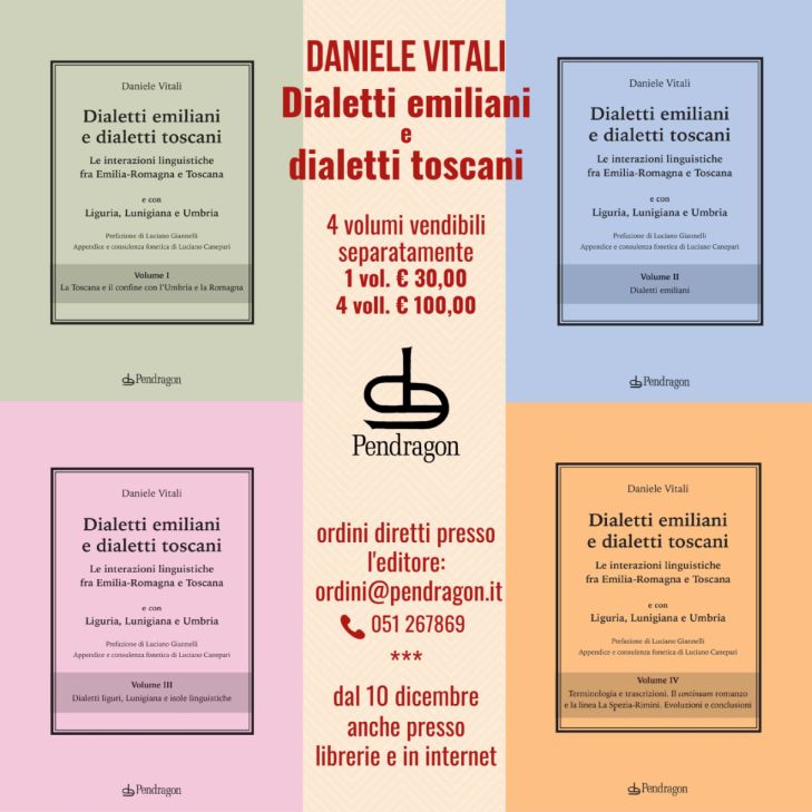 Daniele Vitali lavora come traduttore a Bruxelles, ma per chi si occupa di linguistica italiana è soprattutto noto come dialettologo. Il suo lavoro si contraddistingue per la completezza e l’acribia nelle ricerche condotte sul campo: con l’intenzione di studiare e, soprattutto, registrare i dialetti della sua regione, Vitali si è spinto in ogni angolo della sua Emilia-Romagna. La casa editrice Pendragon ha pubblicato l’anno scorso un imponente volume che raccoglie un’ulteriore impresa (è il caso di esprimersi così) realizzata da Vitali: lo studio dei dialetti che percorrono il confine appenninico della sua regione, nonché dei più generali sistemi linguistici a cui appartengono. Il titolo completo, esplicativo, del volume è “Dialetti emiliani e dialetti toscani. Le interazioni linguistiche fra Emilia-Romagna e Toscana. E con Liguria, Lunigiana e Umbria”.