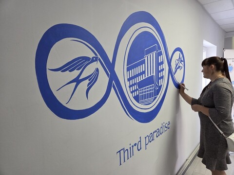 Gli studenti e i docenti dell’università di Kharkiv, insieme a una delegazione di volontari italiani, hanno realizzato un murale ispirato alla creazione dell’artista sulla parete di un corridoio dal valore simbolico: come scrive Doriano Zurlo, autore per Vita di un articolo sull’evento e referente per la comunicazione del progetto Giubileo in Ucraina, quel corridoio “collegava la parte dell’edificio colpita dai missili con la parte rimasta illesa”. L’evento si è poi trasformato in una mostra: gli studenti di arte hanno reinterpretato l’opera con materiali, soggetti e sensibilità diverse. Allo stesso tempo, veniva proiettato un video dell’artista – realizzato per l’iniziativa e indirizzato agli studenti ucraini – nel quale Pistoletto ricordava l’importanza della creatività per quella “pace preventiva” che impedisce agli uomini “di mangiare altri uomini”.