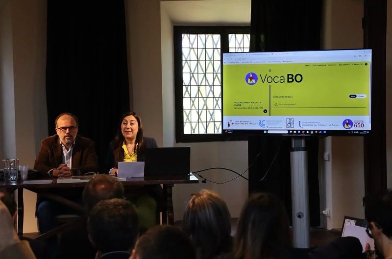 CERTALDO (Firenze) – Nel mostrare sullo schermo la pagina d’ingresso, la caporedattrice del progetto, Veronica Ricotta, tradisce l’emozione: “È come se stessimo sollevando un velo”, dice, riferendosi al momento inaugurale. A Certaldo, in via Boccaccio 18, sede della casa museo e dell’Ente Nazionale Giovanni Boccaccio (ENGB), non è una giornata qualunque. Non solo perché siamo di Dantedì – il 28 marzo, la giornata di celebrazione nazionale di Dante Alighieri – ma anche perché si assiste al varo di un progetto ora aperto a ulteriori sviluppi e al pubblico: il VocaBO, il Vocabolario (della lingua) di Boccaccio online, è in rete (https://www.vocabo.org/#/). L’interfaccia è di cristallina essenzialità: si digita la parola (per l’occasione, Ricotta digita “selva”, in onore di Dante), si preme invio, ed ecco le forme, le attestazioni, le occorrenze delle opere del Certaldese, l’etimologia e, laddove prevista, una scheda di contestualizzazione. La squadra di Giovanna Frosini, professoressa all’Università per Stranieri di Siena e Presidente dell’ENGB, ce l’ha fatta: in meno di tre anni ha messo in piedi un’opera che unisce il massimo rigore filologico, da un lato, alla praticità e accessibilità degli esiti delle ricerche, dall’altro.