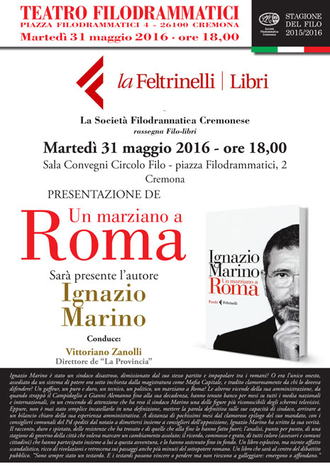 Marino presenta a Cremona il suo libro, “Un marziano a Roma”